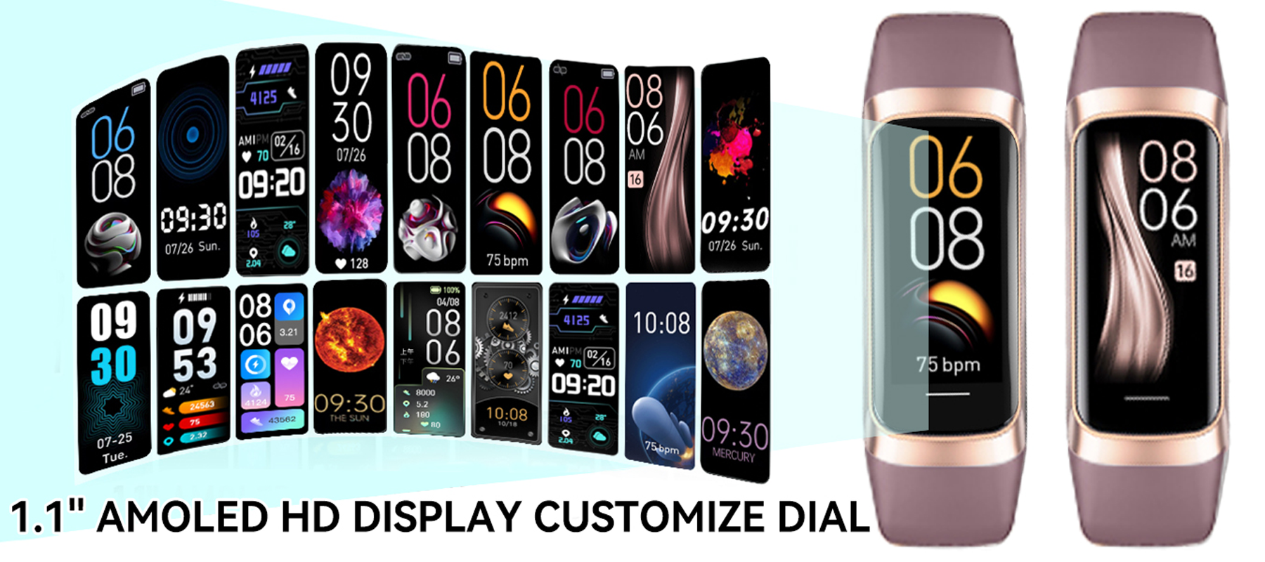 - Écran Couleur AMOLED — Écran HD de 1,1 pouce affichant clairement vos données avec style.